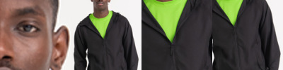 60% polyester/40% recycled polyester. Wicking quick drying fabric. Relaxed fit. Raglan sleeves. Three panel hood with toggles. Full length zip. Two front zip pockets. Elasticated cuffs. Hem with toggles. Tear out label.