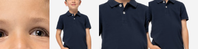 65% recycled polyester/35% cotton. Regular fit. 1x1 ribbed flat knit collar and cuffs. Taped neck, inner collar and shoulder seams. Two button placket. Double topstitch cuffs. Twin needle hem. Tear out label. Superwash® 60°C.