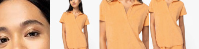 85% organic combed cotton/15% recycled polyester. Towelling fabric. Enzyme washed. Straight fit. Reinforced shoulders. Half moon back yoke. V shaped buttonless placket. Twin needle cuffs and hem. Tag free. Recycled polyester is made from post-consumer waste.