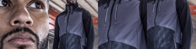 Warm backed woven soft shell XPT three layer fabric. Polyester outer layer, made from at least 50% recycled polyester. Waterproof and breathable membrane. ATL durable water repellent finish. Grown on adjustable hood. Full length zip with chin guard and inner zip guard. Two chest zip pocket. Underarm ventilation. Two front zip pockets. Left sleeve pocket. Contrast stretch ripstop panels. Reflective detail. Tear release adjustable cuffs. Adjustable drawcord hem.