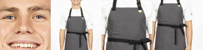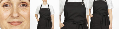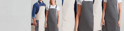 100% heavy cotton canvas. Metal eyelet detail for adjustable knotted neckband. Large front pockets. Self fabric ties. Width 71cm. Length 71cm. 40°C wash.