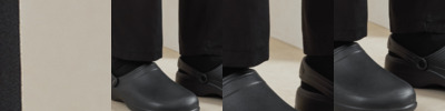 EVA upper. Lightweight and waterproof. Comfortable moulded inner sole. Adjustable hinged heel strap. Anti-slip sole. Shock absorbent. Anti-static.