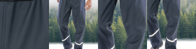 100% polyurethane. Recycled polyester lining. Soft and supple feel fabric. Waterproof 3000mm with welded seams. Breathable 1000g and windproof. Elasticated waistband. Contrast mesh front and back panels. Hanging loop. Reflective leg bands. Open leg ends with stud adjusters. Tag free. Co-ordinates with RS915.