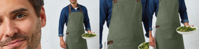 100% heavyweight cotton terry. Two pockets. Tie front. Excellent absorbency qualities. Hanging loop.
