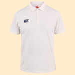 100% polyester. Vapodri wicking technology. Self fabric collar. Taped neck. Three button placket. Panel detail on underarms and sides. Curved back hem. Twin needle stitching. Branding on right chest.