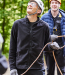 600D ripstop polyester. Durable water repellent treatment. Low-profile streamlined design. Grab handle. Padded adjustable shoulder straps. Fully adjustable chest strap. Roll-top closure. Front zip pocket. Two side pockets. Padded breathable back panel. Padded laptop compartment compatible up to 15.6". Multi-purpose attachment loops. Glove-friendly metal buckles. Reflective detail. Tear out label. Capacity 18 litres.